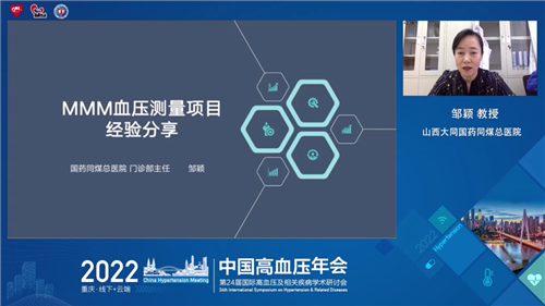 山西大同國藥同煤總醫(yī)院于2917年9月正式成為全國12家電子病歷系統(tǒng)功能應用水平分級評價六級醫(yī)院之一,高度重視并積極參與到此次2022 MMM項目之中,并由鄒穎教授簡要介紹了其院內MMM血壓測量項目的開展經驗。