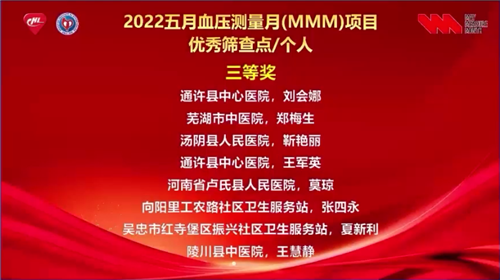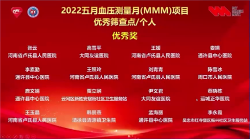 2022五月血壓測量月(MMM)項目優(yōu)秀篩查點/個人、優(yōu)秀組織