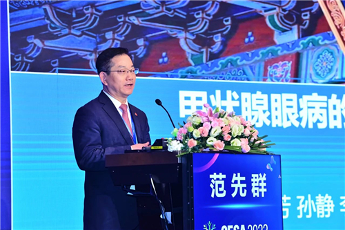 MMC創(chuàng)始人、中國內(nèi)分泌代謝病??坡?lián)盟主席、上海交通大學醫(yī)學院附屬瑞金醫(yī)院院長、中國工程院寧光院士在致辭中說道,“今年,MMC實現(xiàn)了“雙1000”目標,即:“建立1000家MMC中心,管理1000萬糖尿病患者”當中的第一個目標。這離不開在座的每一位同道的信任、堅持和付出!全國MMC就是一個大家庭,所有的醫(yī)護人員同心協(xié)力,共同扮演著代謝病患者的健康衛(wèi)士角色。在大家的共同努力下,患者的糖化血紅蛋白達標率和代謝指標綜合達標率均顯著提升,達到或超越了國際先進水平。MMC的管理模式和系列研究成果也得到了國際國內(nèi)同行的高度肯定,同時,MMC即將落戶粵港澳大灣區(qū),為打造健康“一帶一路”打下重要基礎。而這些都進一步標志著MMC在積極響應國家“健康中國”戰(zhàn)略的同時為我國代謝慢病管理帶來了重大變革和貢獻。” 大會舉行了隆重的MMC突破1000家盛典,中國工程院范先群院士、中國工程院寧光院士、朱大龍教授、趙家軍教授、嚴勵院長、谷衛(wèi)教授,國家標準化代謝性疾病管理中心省級分中心代表:劉萍教授、秦映芬教授、單忠艷教授、鄭超教授、吳勝利教授、陳蕾教授、王育璠教授、杜建玲教授、勵麗教授上臺,優(yōu)秀分中心代表:鄭啟東教授、戴元成教授、董其娟教授、徐鳳梅教授、姜冉華教授、顧雪疆教授、唐榮教授、齊敬霄教授,上海智眾醫(yī)療科技有限公司 CEO李振杰先生,阿斯利康商業(yè)創(chuàng)新執(zhí)行總監(jiān)王健先生一同上臺參與1000家醫(yī)院的落地慶典。范先群院士:甲狀腺眼病的發(fā)生機制和治療進展